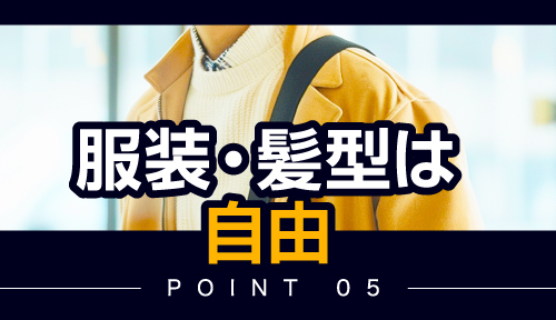 服装・髪型は自由です。ピアスやタトゥーも問題ありません。