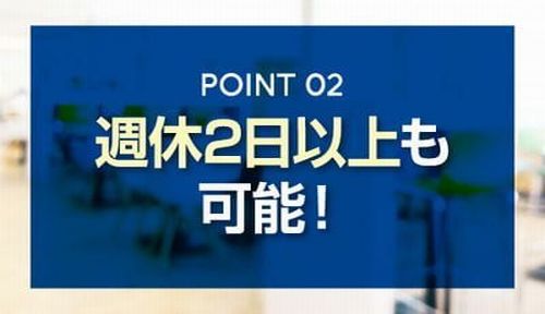 【週休2日以上も可能!】この業界では珍しい週休2日以上可能(アルバイトはシフト応相談)!公私ともに充実できます。