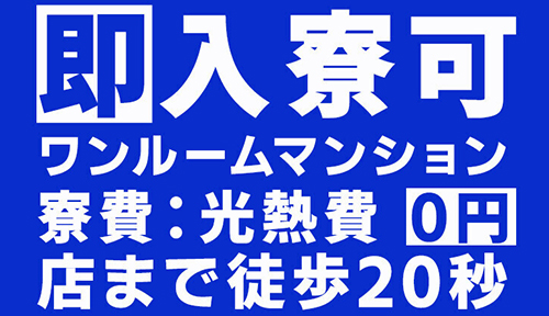 店舗から徒歩20秒のワンルームのマンション寮を完備しております◎