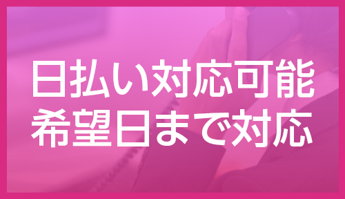 日払い制度は希望日まで対応しております!急な出費も解決していただけますので有効にお使いくださいませ。