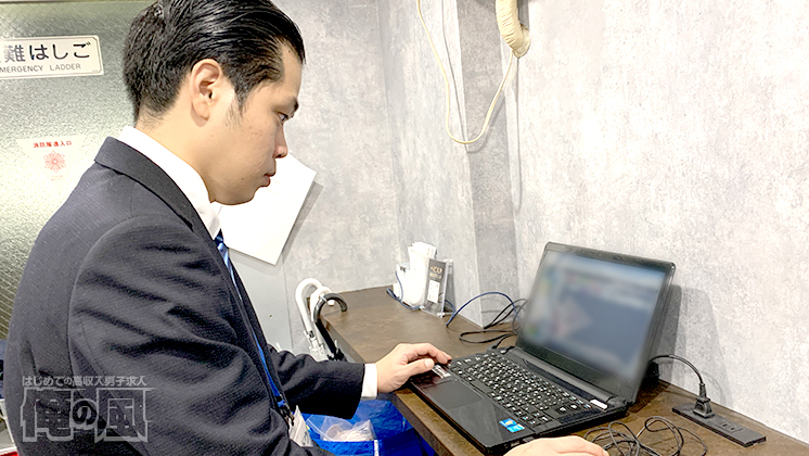 僕は遅番で勤務しています。15時30分からの始業に合わせて15時20分頃に出社し、朝礼と引き継ぎを行ってから業務に入ります。今は「リスト」と呼ばれる女性キャストさんへの連絡業務や、お客様のご案内などを中心に行っています。