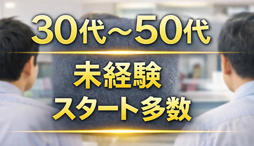 現在活躍しているスタッフの多くが、30代〜50代の未経験スタートです。年齢や業界経験を気にせず、安心して始められる環境です。