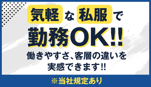 私服勤務(※当社規定あり)なので、スーツのような堅苦しさは無し!