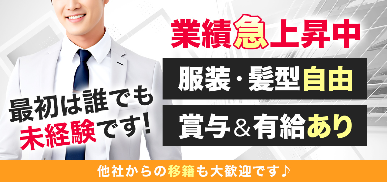 業界未経験でも35万円以上スタート!最短入社3か月で50万以上の実績あり!店長や幹部候補、経験者は更に優遇!寮も完備!