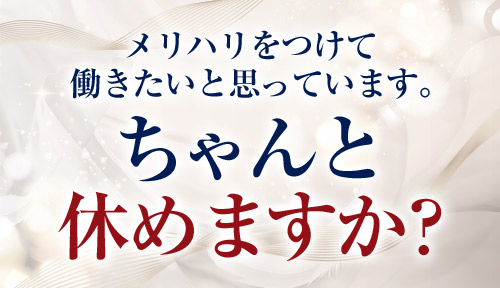 ちゃんと休める組織ですのでご安心ください!沢山稼いでしっかり休めるメリハリのある組織です!