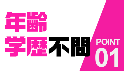 未経験OK!見た目も一切不問です。「やる気」と「明るい笑顔」さえあれば歓迎いたします!