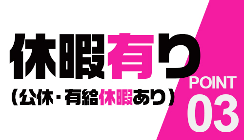 公休・有給休暇あり◎仕事とプライベートを両立しやすい環境です!夏季・冬季休暇、特別休暇もございます。