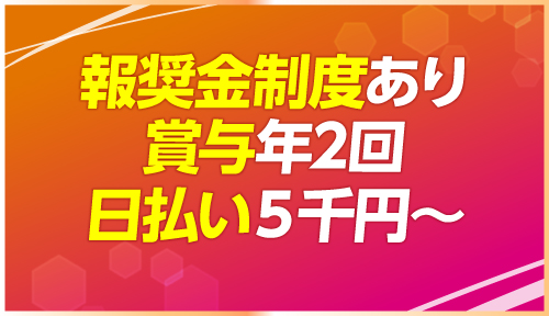 報奨金制度、賞与年2回、日払い5千円〜など嬉しい待遇が盛り沢山!その他待遇の詳細につきましてはお気軽にお問い合わせ下さい!
