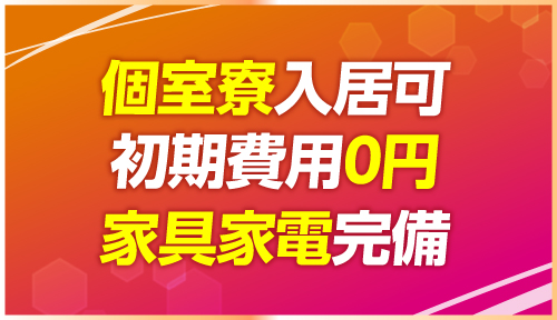 初期費用0円で個室寮に入居可能です!家具家電完備しておりますので不自由なく過ごせる環境です!面接のご予約やお問い合わせは随時受け付けております!