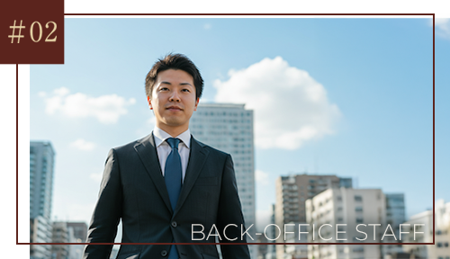 ■スタッフ紹介■ 副支配人/Mさん▶︎前職は住宅営業マン。未経験のため入社1年目は基本業務に携わり、2年目から店舗運営の能力を発揮。現在は多岐の業務に携わっています。次期、支配人候補の一人です。