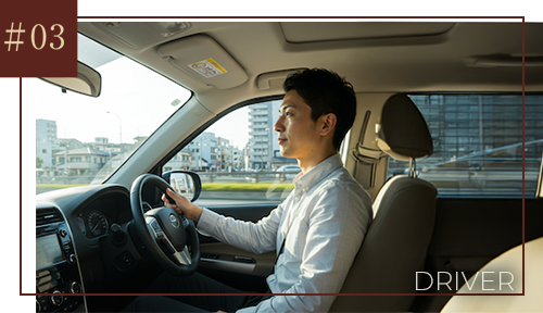 ■スタッフ紹介■ ドライバースタッフ/Tさん▶︎自営業の飲食店を廃業して当社へ。前職で身につけたコミュニケーション力と、元々持ち合わせていた運転好きの一面がマッチング。本日も安全運転を実施します。