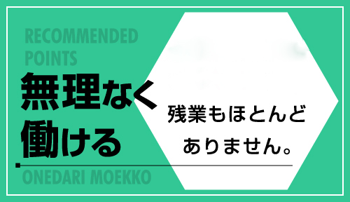 ★プライベートの時間もしっかり確保できます!また、残業もほとんどありません。身体が資本!無理なく働ける職場です。